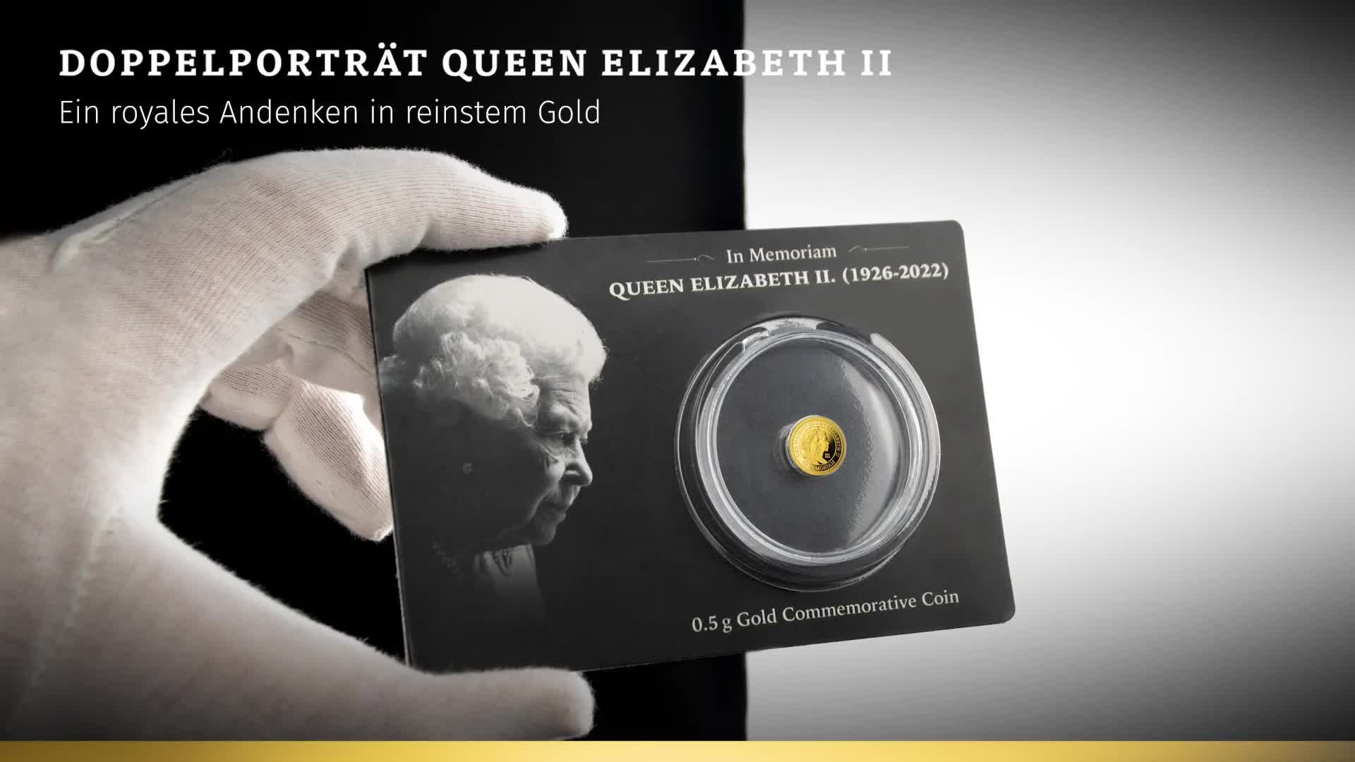 Die offizielle 1/2-g-Gedenkmünze "Doppelporträt Queen Elizabeth II."