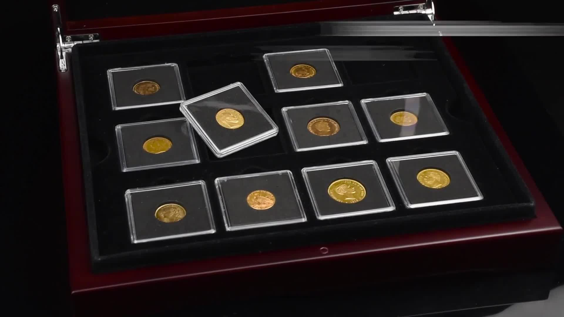 ✔Schützende Kapseln und eine Holz-Kassette mit Platz für alle 10 Münzen zur stilvollen und sicheren Unterbringung Ihrer Goldmünzen. Sollten wir im Laufe der Zeit noch weitere Gold-Raritäten beschaffen können, die Ihre Sammlung perfekt ergänzen, erhalten Sie selbstverständlich eine weitere passende Aufbewahrung gratis.
