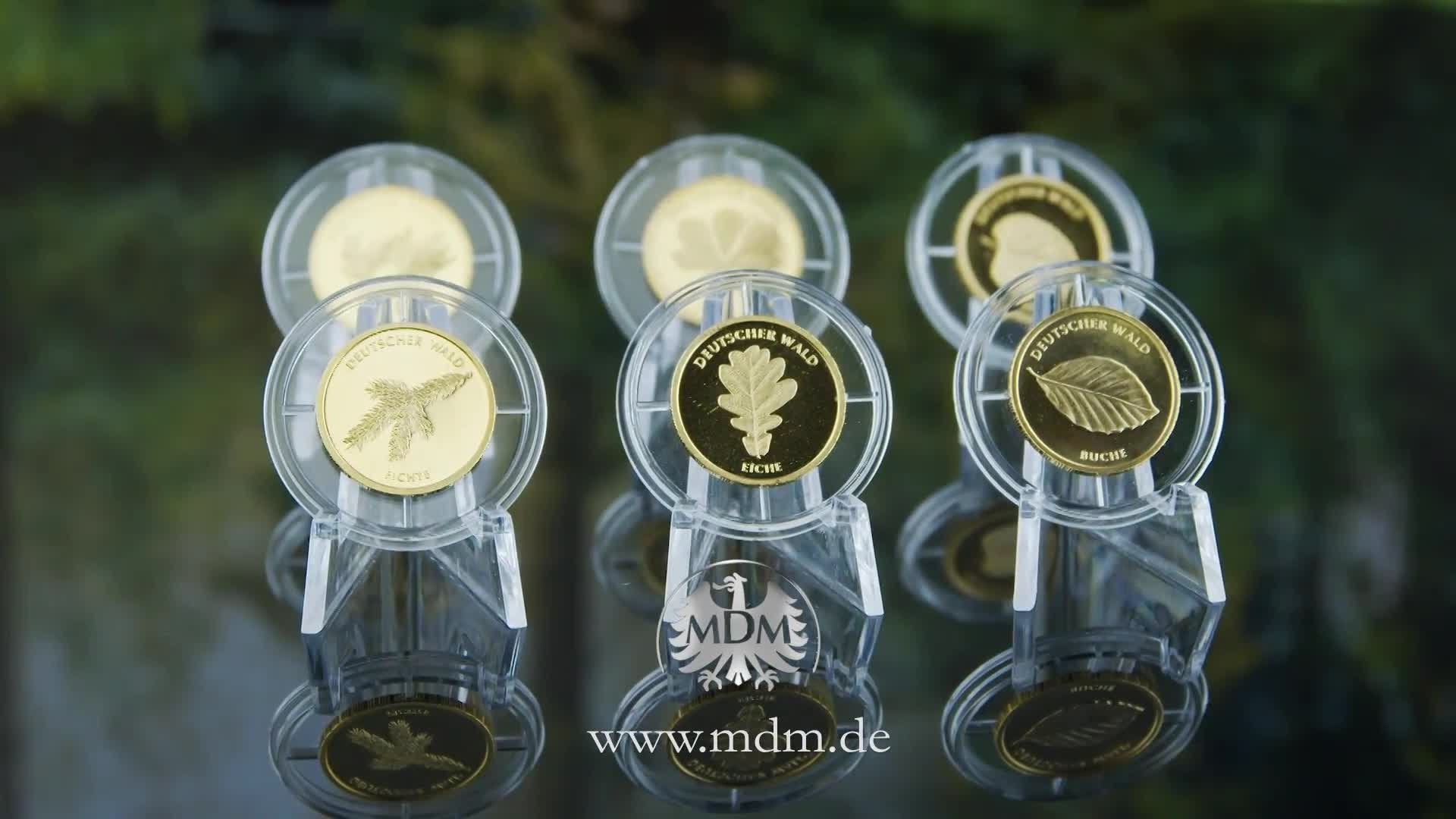 Mit den allen deutschen 20-Euro-Goldmünzen „Eiche“ (2010), „Buche“ (2011), „Fichte“ (2012), „Kiefer“ (2013), „Kastanie“ (2014) und „Linde“ (2015) in der Sammlerqualität Stempelglanz (st)!
