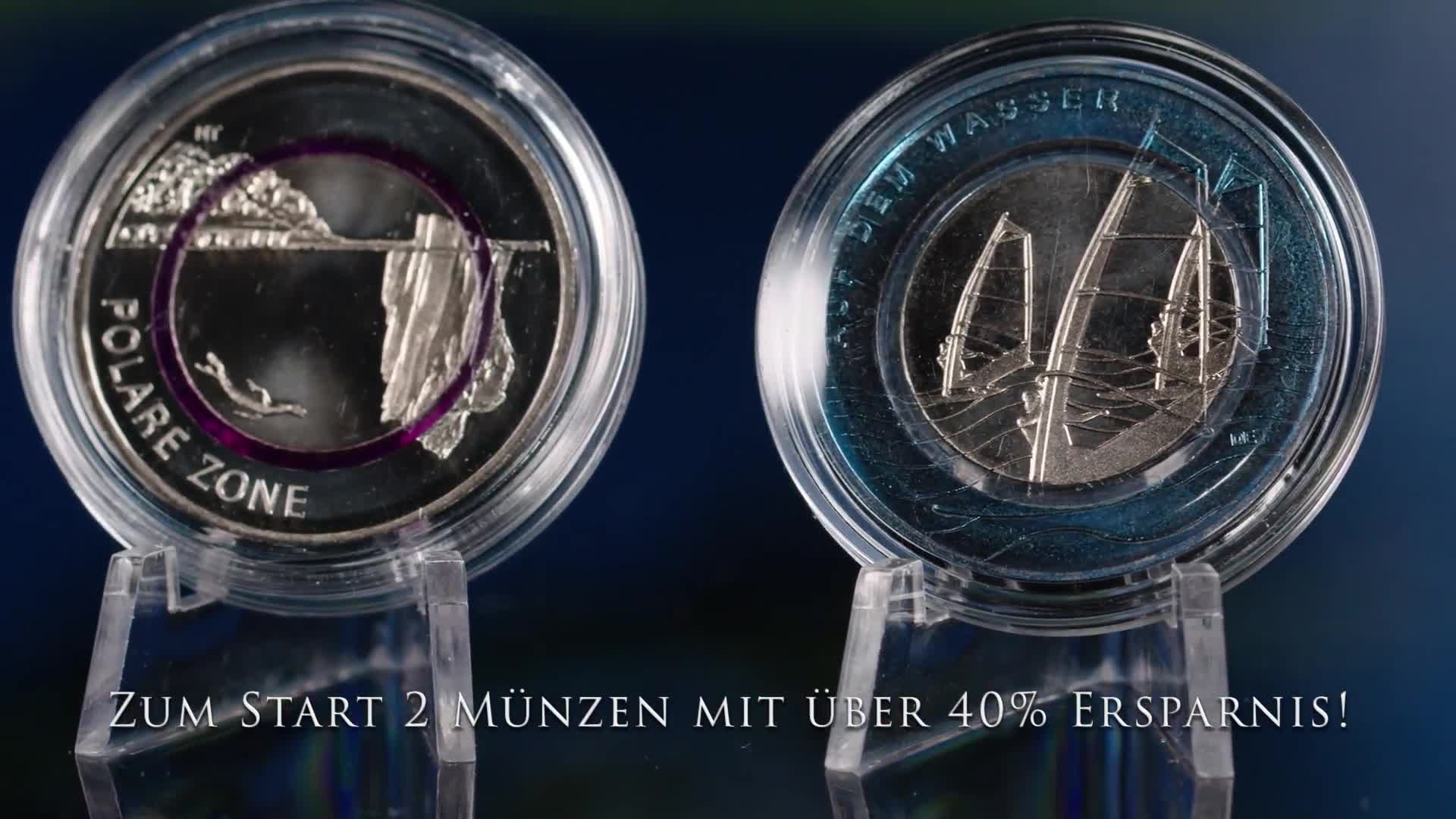 Nutzen Sie deshalb Ihre Chance und starten Sie gleich mit der 5-Euro-Münze 2021 "Polare Zone" und der 10-Euro-Münze 2021 "Auf dem Wasser" zum günstigen MDM-Startpreis von nur 19,99 € (statt regulär 40,98 €) in die Sammlung der offiziellen deutschen 5- und 10-Euro-Gedenkmünzen mit Polymer-Ring. Nach dieser Sofort-Ersparnis bauen Sie sich mit einem monatlichen Sammelbetrag in Höhe von 30,- Euro im Monat eine komplette Sammlung auf!