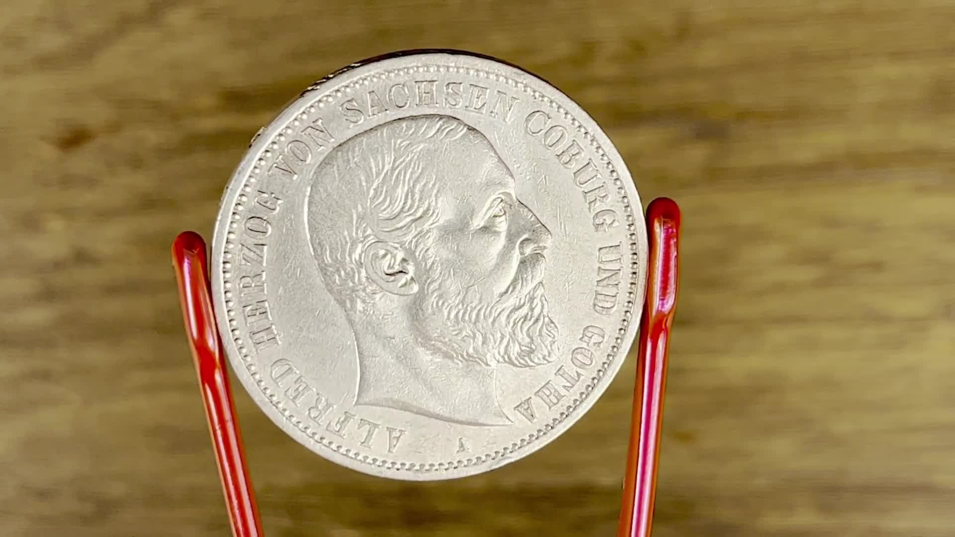 Nur zwei Kaiserreichsmünzen wurden seinerzeit für das Herzogtum geprägt. Eine davon ist die einzige 5-Mark-Münze von Alfred von Sachsen-Coburg und Gotha. Die äußerst geringe Auflage von nur 4.000 Stück macht die über 120 Jahre alte Münze aus massivem Silber 900/1000 heute zu einem gefragten Exemplar unter Sammlern und ist nur noch selten zu haben!
