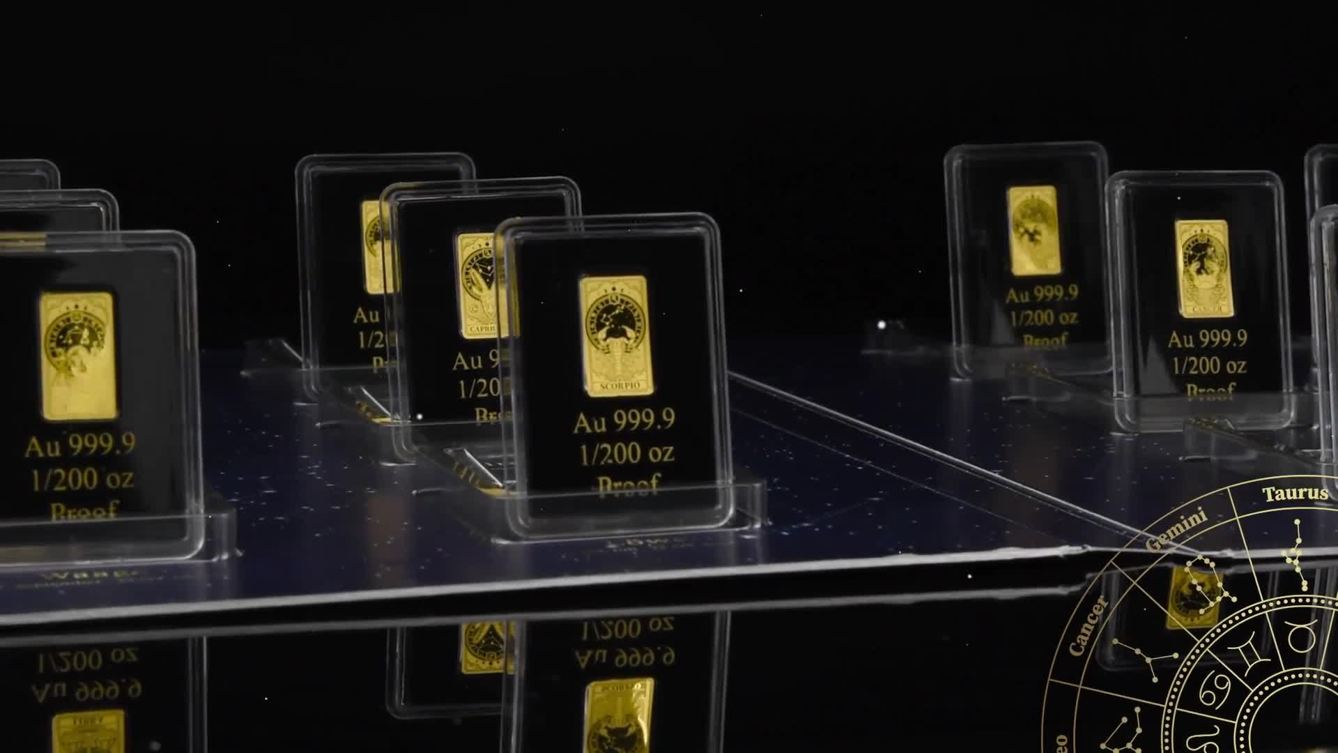 Wer jedoch nicht nur die Sterne betrachtet, sondern auch den in den Himmel schießenden Goldkurs, weiß genau, welchen Wert und welche Perspektive er mit den zwölf filigranen Goldbarren erwirbt. Wie zum Sternzeichen ein Aszendent gehört, so verbindet sich hier untrennbar Wert mit Schönheit. Die Münzbarren sind kleine Meisterwerke der Prägekunst - jeweils aus 1/200 Unze reinstem Gold (999/1000) und vollendet in der höchsten Prägequalität "Polierte Platte"!
