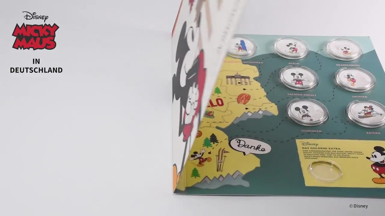 Am 03.10. feiern wir 75 Jahre Deutsche Einheit – und Micky Maus reist quer durch Deutschland! Auf seiner großen Tour verbindet er alle 16 Bundesländer. Jedes Wahrzeichen, jede Station wird auf einer Silber-Gedenkprägung verewigt – ein numismatisches Abenteuer, das die Vielfalt und Einheit Deutschlands feiert.