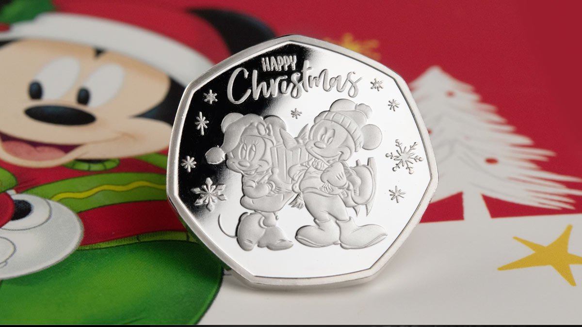 Mickey Maus und Minnie Maus wünschen „Fröhliche Weihnachten“! Erleben Sie das wohl bekannteste Paar Entenhausens auf der neuen siebeneckigen Disney-Weihnachtsprägung 2019 „Mickey & Minnie – Christmas“ mit einem fröhlich-romantischen Motiv. Auf der Vorderseite der weihnachtlichen Gedenkausgabe präsentieren sich die weltberühmten Comic-Lieblinge mit Geschenk und Schlittschuhen unter dem Schriftzug „Happy Christmas“ sowie lustig posierend mit Santa-Claus-Mützen auf der Titelseite der dazugehörigen Grußkarte. Nicht nur Disney-Fans werden sich garantiert über diese gleichermaßen glanzvollen wie originellen Weihnachtswünsche freuen.