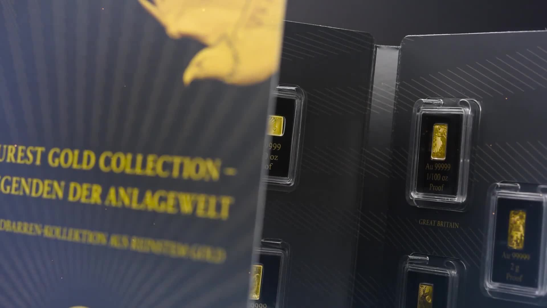 Die "Purest Gold Collection – Legenden der Anlagewelt" umfasst 12 Barrenmünzen aus 1/100 Unze reinem Gold (999,99/1000) in höchster Qualität Polierter Platte. Jedes Motiv ehrt eine weltbekannte Anlagemünze, darunter Krügerrand und American Eagle.
