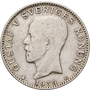 Die Münze aus echtem Silber (800/1000) zeigt auf der Vorderseite den Kopf von König Gustav V. im Profil und bildet auf der Rückseite das gekrönte Wappen des Landes ab, welches von der Kette des Seraphim-Ordens umzogen ist. Sie ist die erste von ingesamt nur zwei ausgegebenen 1-Kronen-Münzen des Königs und damit eine besonders gefragte Ausgabe.
